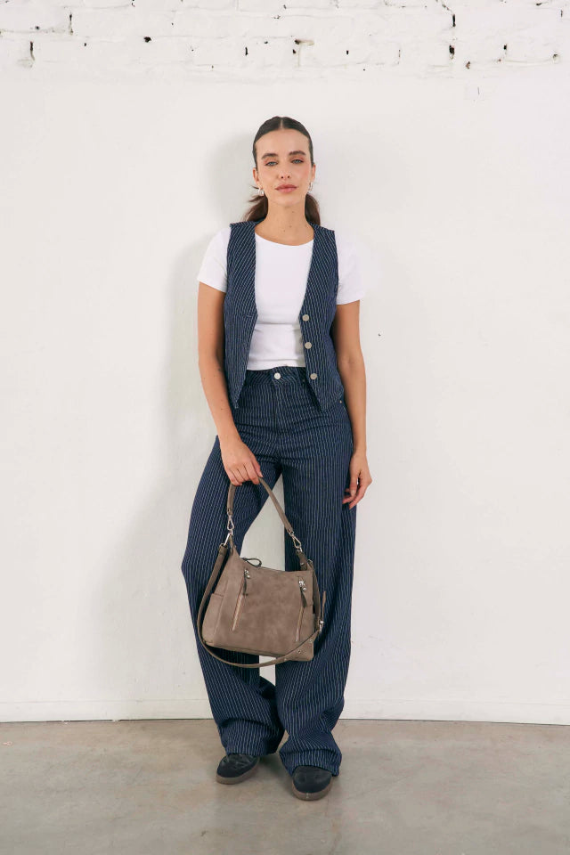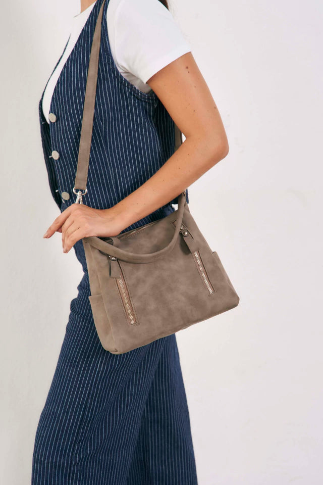 - Bandolera confeccionada en pu gamuzado forrado en gross