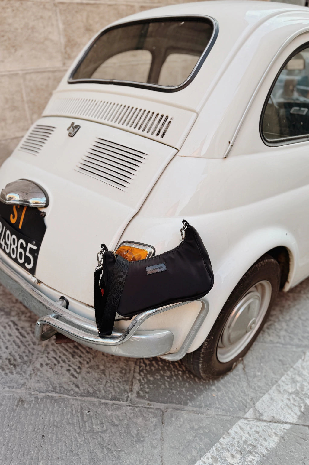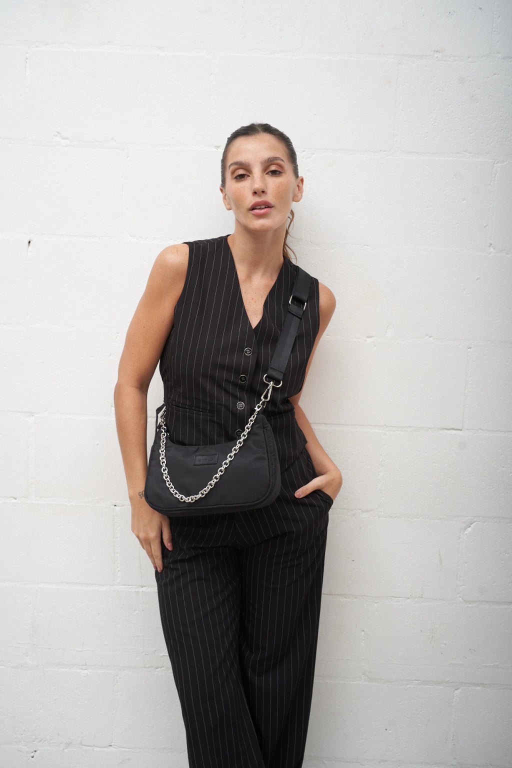 La bandolera Toscana esta pensada como comodín que te resuelve cualquier outfit. Si la queres usar para todos los días, te recomendamos que le saques la cadena, y si queres levantar el look se la agregas.