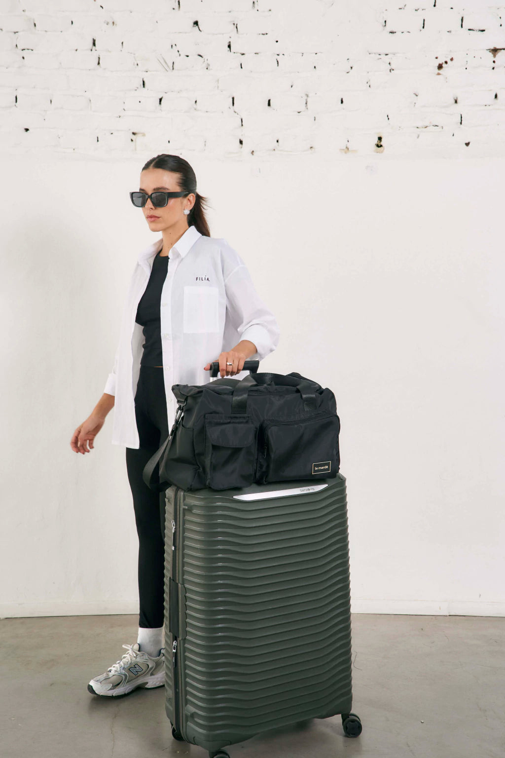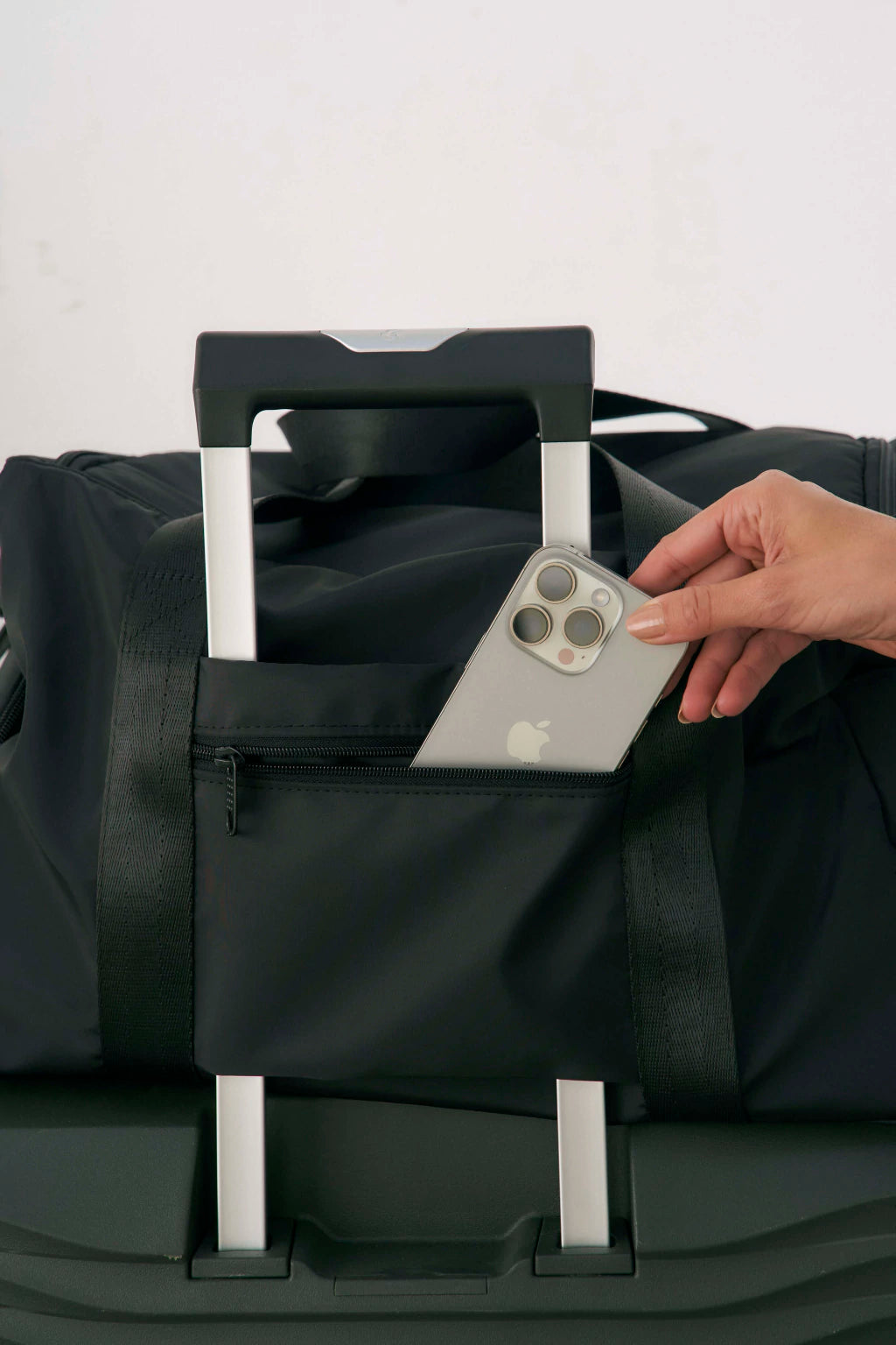 El bolso Oporto es la mejor opción para viajar, trae bolsillo para engancharlo en la valija o carry on y correa regulable para usarlo colgado del hombro si se quiere.